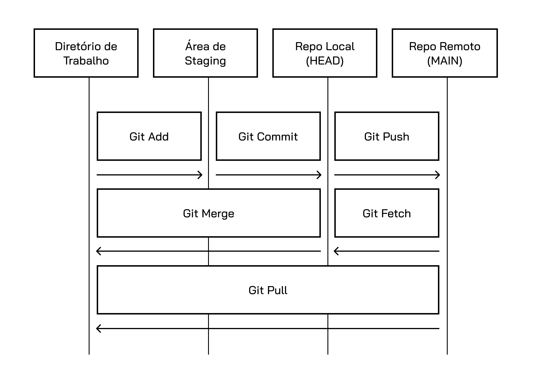 - Staging Area (Área de Staging ou Preparação): Uma área intermediária. Antes de registrar permanentemente um conjunto de alterações (fazer um “commit”), você as adiciona à Área de Staging. Isso permite que você escolha quais modificações específicas farão parte do próximo commit.