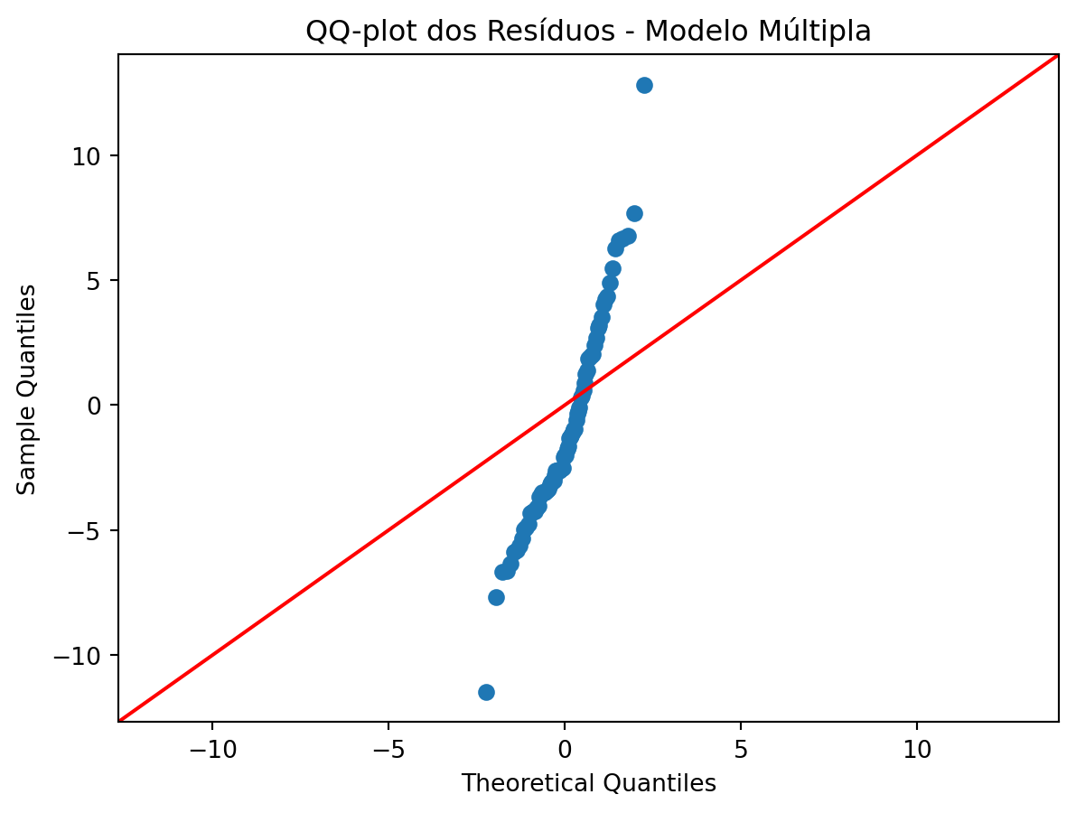 → Rejeitamos H₀: resíduos não seguem distribuição normal.